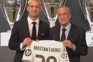 马斯坦托诺将身穿皇马30号球衣,《阿斯报》指出,这意味着他将被注册为卡斯蒂亚(皇马B队)球员,接过贡萨洛-加西亚的号码。